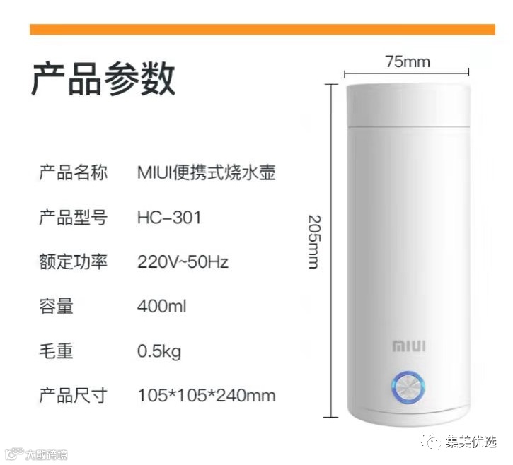 【大牌团购】MIUI便携式电热水杯 原价:159元