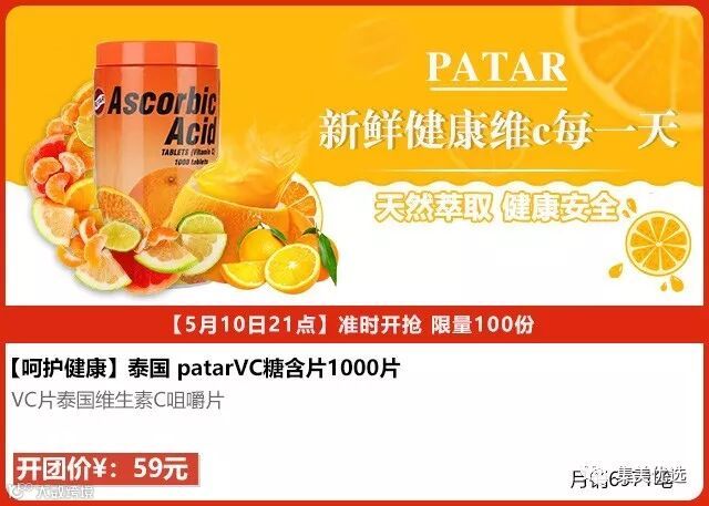 泰国VC片泰国维生素C咀嚼片patarVC糖含片1000片