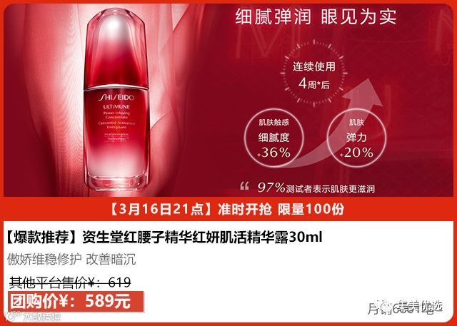 官方数据显示,连续使用红腰子精华4周后,肌肤触感的细腻度能增加36%、弹性提升20%。有97%的测试者表示肌肤更水润,94%的人反馈皮肤变得更加光滑。