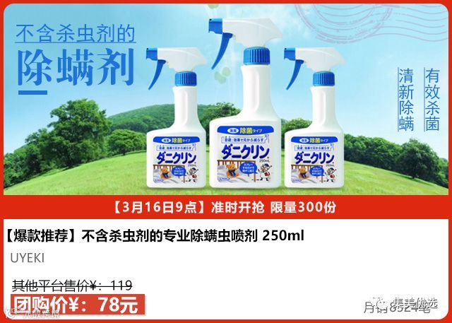 杀灭95%以上的螨虫,每个月只要喷一次就好。靠脂类羧磷酸酯、异丙基甲基苯酚除螨,成分安全,没有刺激的气味,还有日本过敏症协会推荐,不含杀虫剂的,成分安全,家里有孕妇和小孩可以用,家庭主妇除螨必备!