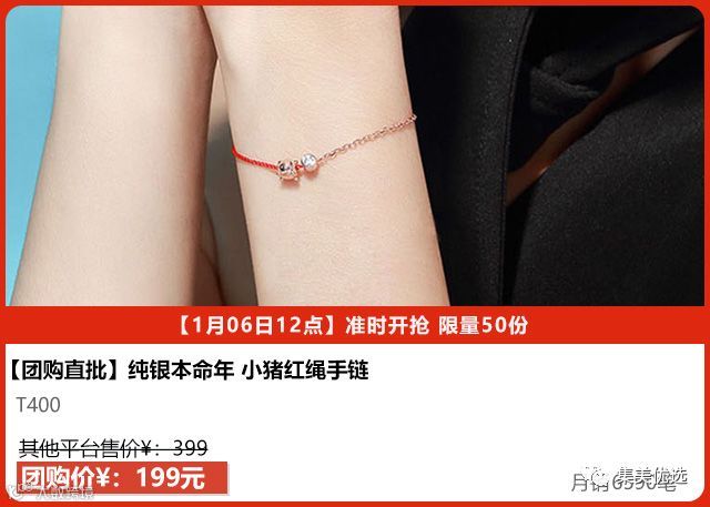 纯银本命年 小猪红绳手链