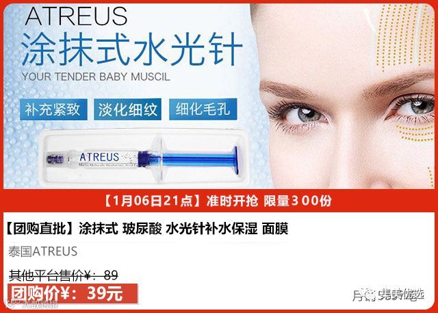 【AT水光针涂抹型】一支相当于20片面膜。11项强大功效:抗氧化、提亮肤色、淡化黑色素、补水保湿、淡化痘印、收缩毛孔、抗皱、提拉紧致、舒缓过敏、修复基底细胞 、深层净化。一步到位适合所有肤质,保证让你的脸通透白嫩,光滑有弹性水光光!