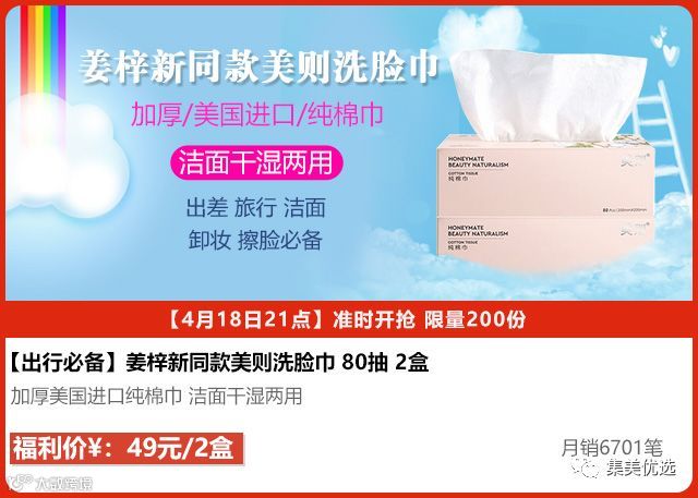 姜梓新同款美则洗脸巾80抽 2盒