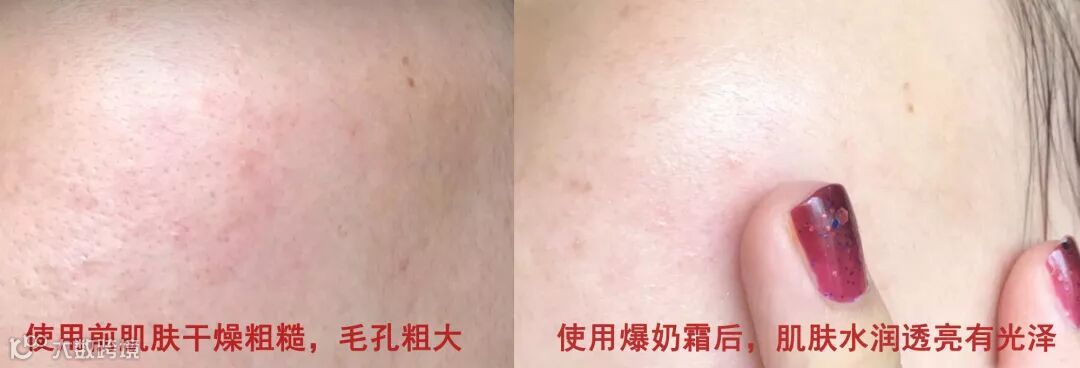 干燥泛红的敏感肌,在使用爆奶霜后,白得透亮~