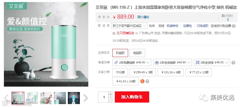 【大牌团购】艾贝丽加湿器 原价:889元