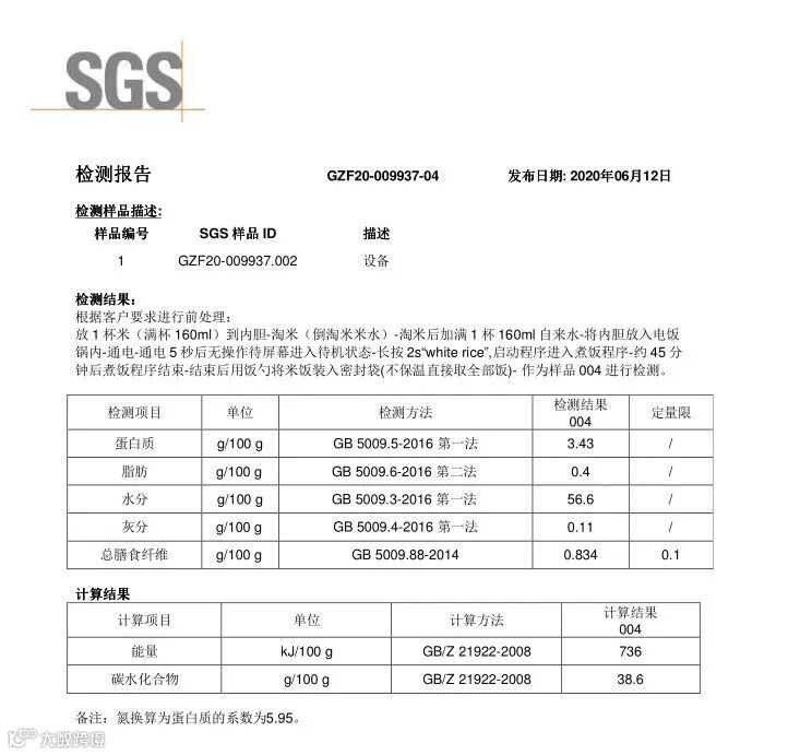 经权威检测机构SGS认证,它煮的脱糖饭,淀粉含量降低34%!