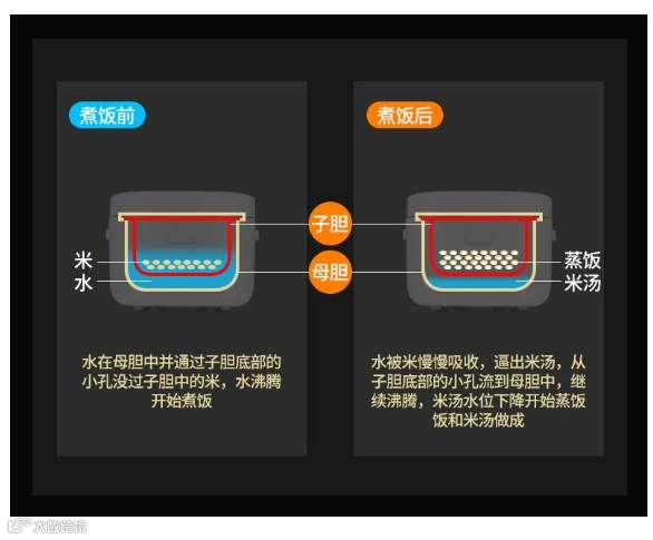 它最“高科技”的地方在于,米汤分离技术!米饭中高含糖的淀粉,会被留在米汤中沥出。