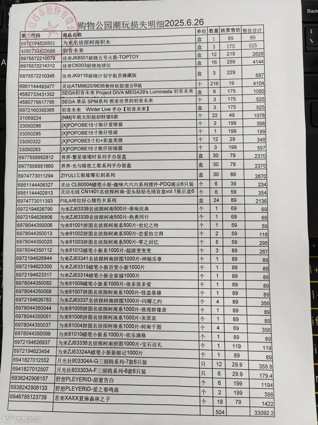 标的规格: 日用百货