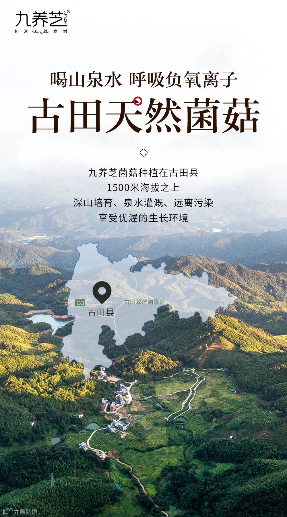九养芝,滋补食养世家,源自“中国食用菌之都”——福建古田,CCTV央视<<国家品牌计划>>推荐产地,九养芝家的银耳种植在古田县1500米海拔之上,深山培育、泉水灌溉、远离污染、享受优渥的生长环境