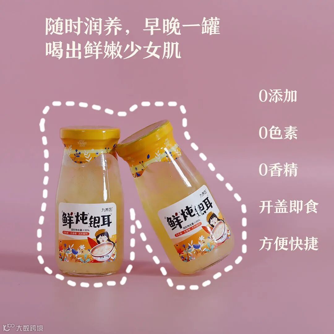 “九养芝鲜炖”即食银耳羹,0色素、0香精、0防腐,开盖就吃,采用121℃度高温杀菌,方便储存。