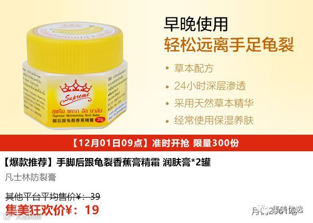 泰国人手一只的皇冠牌香蕉膏,是集养护、滋润、保湿于一身的养护手脚膏。富含8种滋润肌肤王牌成分,帝王香蕉、维生素E、椰子、蜂蜡、羊毛脂、甘油、乳香、还有肌肤卫士向日葵精华,对付干裂的“黄金瓶”!泰国magrace香蕉膏通过酶分解技术萃取,保留原料的精华,再通过纯手工的制胶技术,将8种原料按照比例熬制。不但滋养改善手足干裂,还能加强皮肤脂肪层,让水分密封在肌肤内部,长效滋润!