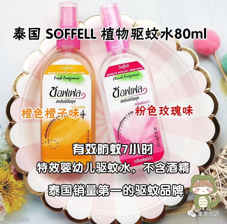 夏天到来,各种蚊虫也苏醒了,相信爱穿短裙短裤的妹子们,家里有小孩的宝妈都会对蚊虫叮咬而烦恼吧?今天给大家推荐泰国soffee防蚊水,无论出门还是在家,喷一喷,和蚊子说拜拜~