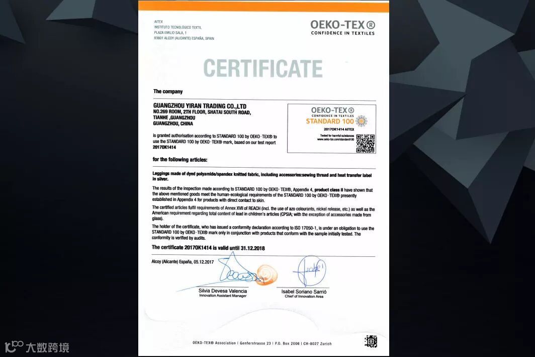 Oeko-Tex100是国际上权威的纺织品生态标签
