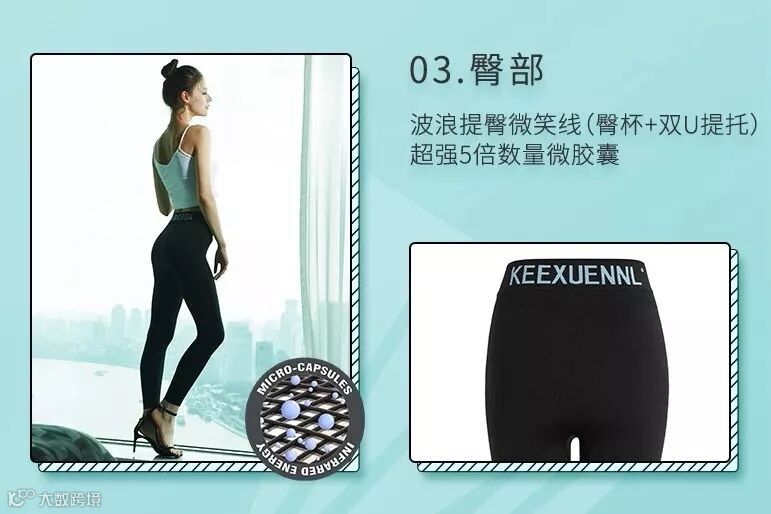3.臀部独特设计的波浪提臀微笑线,能提拉臀部松弛赘肉,使臀型更圆翘紧实!