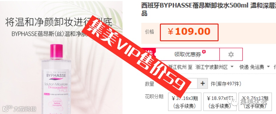 【大牌团购】西班牙BYPHASSE蓓昂斯深层洁净温和卸妆水500ml /1瓶 原价:138元 VIP /黑卡M1会员 福利补贴价:59元