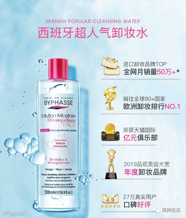 种草达人李佳琦也推荐过这款卸妆水,眼唇、彩妆、粉底液、防晒,都能卸得干干净净。还可以代替洁面,免洗轻松卸,很好用!