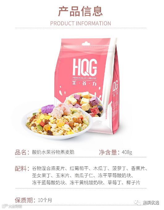 现在,就有一份理想的早餐摆在我们面前,好吃不胖营养全面,开袋即食,早上1分钟就能搞定,再匆忙都能美美吃上!它就是集美给大家推荐的HQG美谷力坚果水果麦片