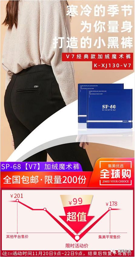 天冷了,推荐这一款打底裤哦,加绒的,超弹贴身、不紧勒、不变形,秋冬的这个天气穿上它刚刚好!!!SP68魔术裤就是让人瘦到骨子里,暖到心窝里~不要羡慕她们的身材,穿上这条裤子,好身材你也可以!