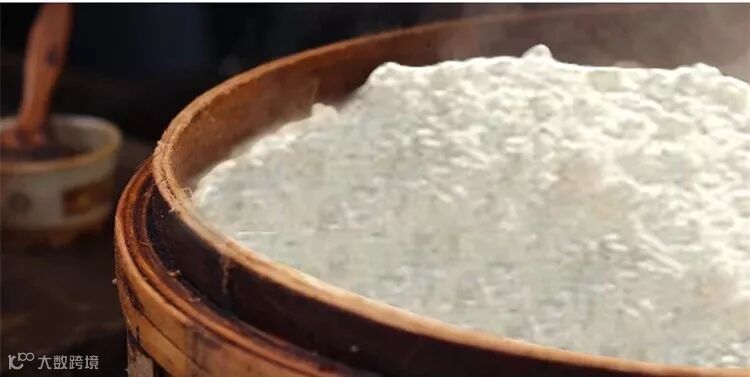 过筛后的粉倒进蒸桶开蒸。