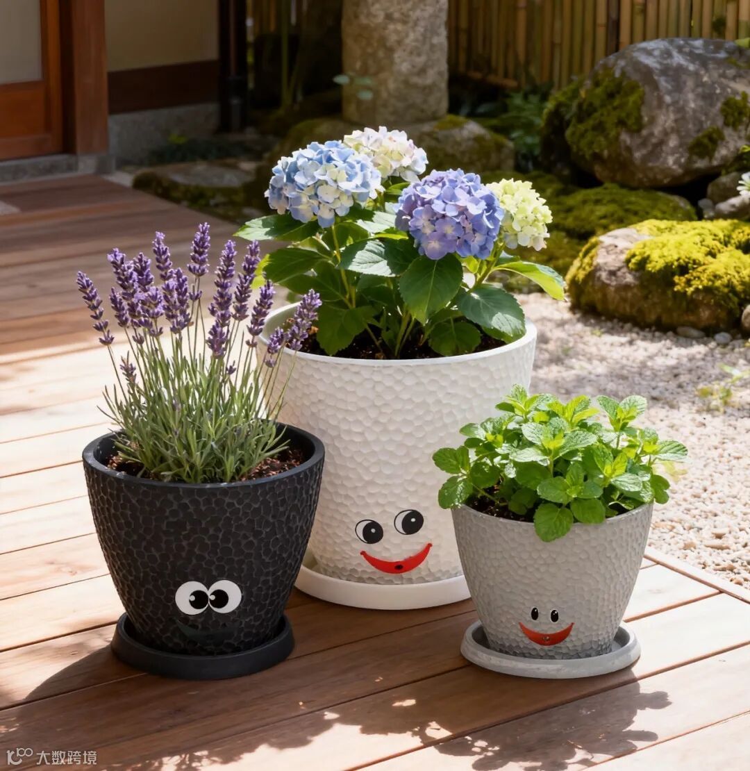 看到花盆上那张永远带着笑意的脸,