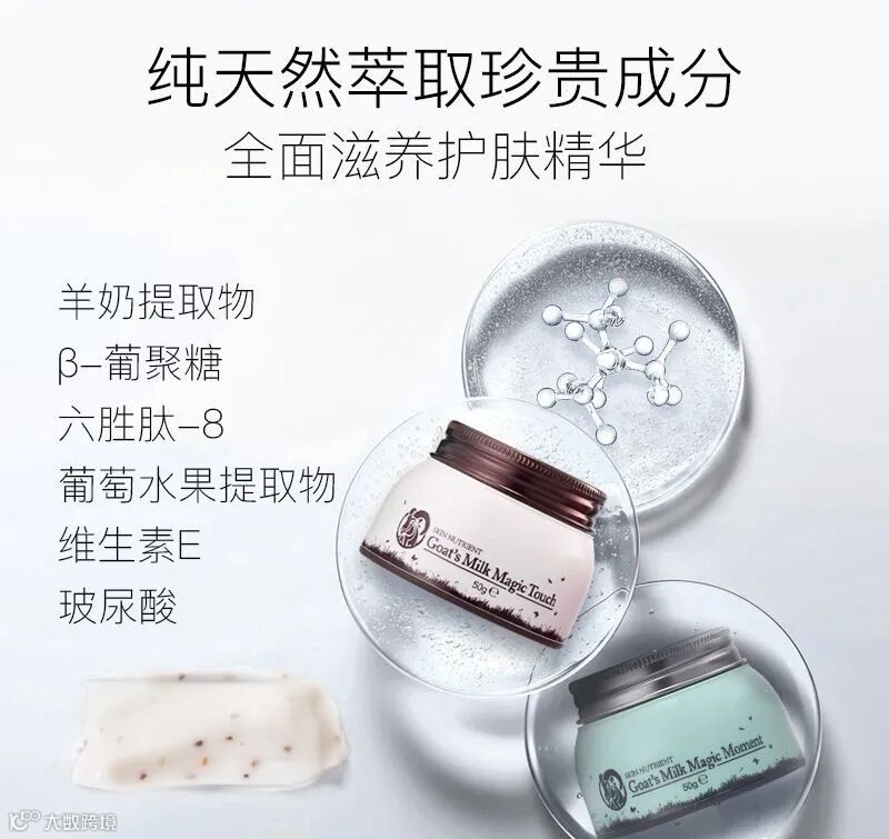 山羊奶中含有誉为“美丽因子“的EGF,被诺贝尔奖盖章认证的修复因子。特别适合于秋冬季干燥的皮肤,对于皮肤问题有超棒的修护作用,皮肤越用越透亮