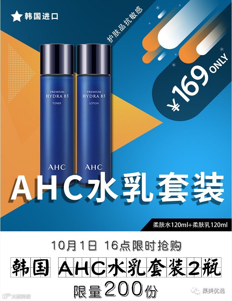 【福利团购】AHC水乳套装补水保湿美白男女韩国护肤品抗敏感孕妇可用柔肤水120ml+柔肤乳120ml
