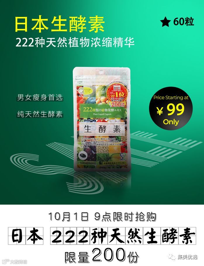 生酵素60粒,使用自然派原材料发酵提取酵素,222种以上的自然材料,原封不动封入胶囊之中,方便您服用,均衡每日营养,酵素酶是人体消化、吸收、排泄的代谢过程中不可或缺的物质,维持膳食平衡 调理肠胃 美容瘦身好选择