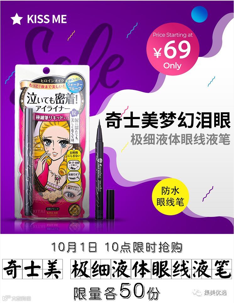 【福利团购】Kiss Me奇士美梦幻泪眼 0.1mm极细液体眼线液笔 kissme防水眼线笔