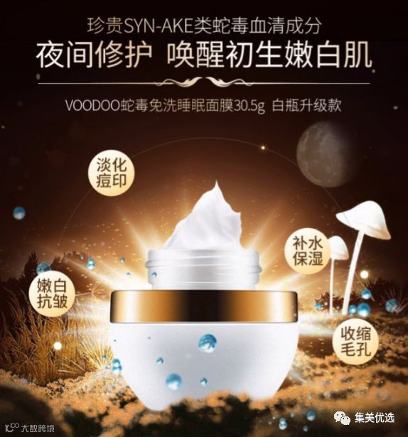 不仅仅是蛇毒,voodoo面膜的主要成分还有:天山雪莲,喜马拉雅盐。