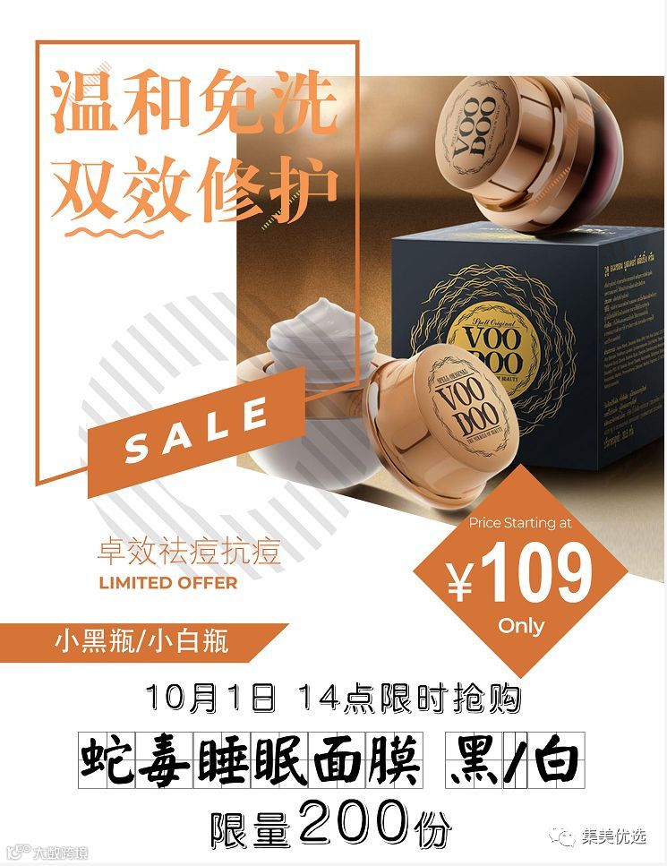 【福利团购】 泰国Voodoo蛇毒 免洗睡眠面膜30g 美白保湿 抗皱祛痘印淡斑