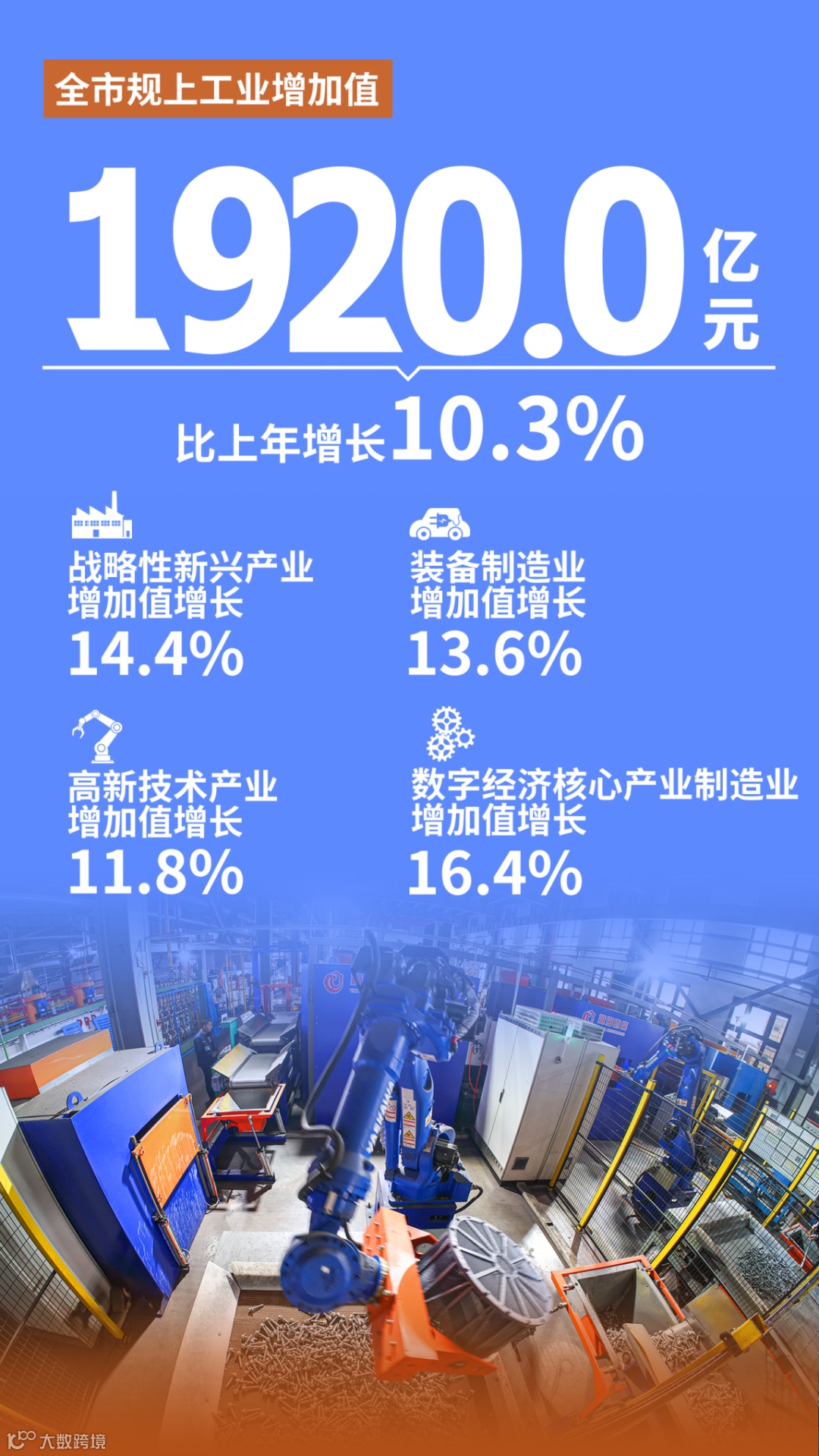 2025年,全市规上工业增加值比上年增长10.3%,持续领跑全省。分行业看,33个行业大类中,28个行业增加值实现正增长,增长面达84.8%,12个行业保持两位数增长。优势产业巩固提升,规上汽车零部件、电气产业增加值分别比上年增长19.0%、13.6%。新兴产业聚链成势,规上战略性新兴产业、装备制造业、高新技术产业、数字经济核心产业制造业增加值比上年分别增长14.4%、13.6%、11.8%、16.4%。科技创新高效转化,规上工业新产品产值比上年增长13.9%,新产品产值率达43.1%、比上年提升1.3个百分点。工业出口保持韧性,规上工业出口交货值比上年增长9.8%。
