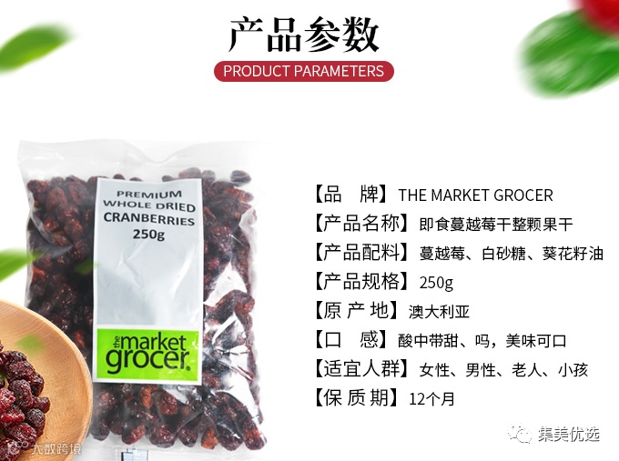 【大牌团购】澳洲 The market grocer 天然蔓越莓果脯干250g/1包 原价:65元 VIP /黑卡M1会员 福利补贴价:39.9元 嘴馋又担心发胖? 那这款人见人爱、爆红ins的 The Market Grocer蔓越莓干 一定会成为你的心头爱