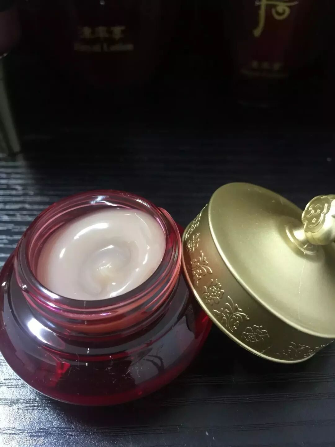 津率享面霜30ml:面霜的质地偏厚,但是涂抹起来,你完全不用担心,用手掌的温度乳化面霜,能被肌肤迅速吸收!它里面使用宫廷妇人方-加味逍遥散成分等深入到各个皮肤细胞,促进皮肤细胞循环,把有效成分传达到皮肤深层,使皮肤变得丰润、细致、让肤色白皙透明。