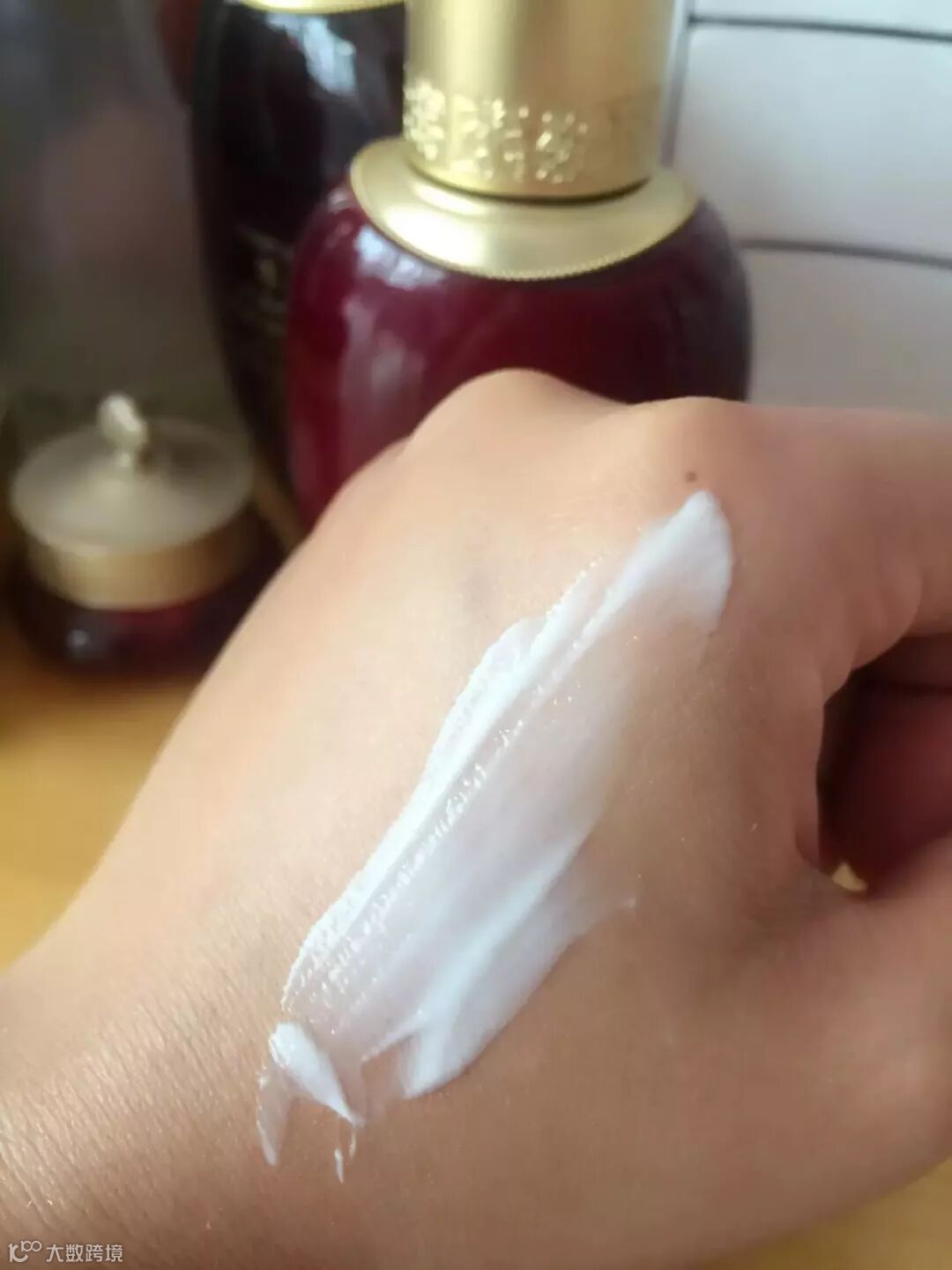 津率享调理乳110ml+20ml:它是乳白色的,淡淡的红参香气,延展性很好,非常滋润~亚洲人的肤色最大的问题就是泛黄,而津率享津液能有效锁住水分,充分改善肌肤的肌理活力,强效祛黄!
