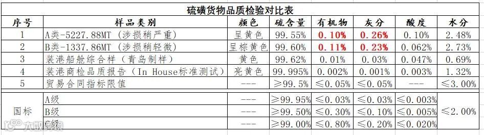 标的规格: 进口硫磺