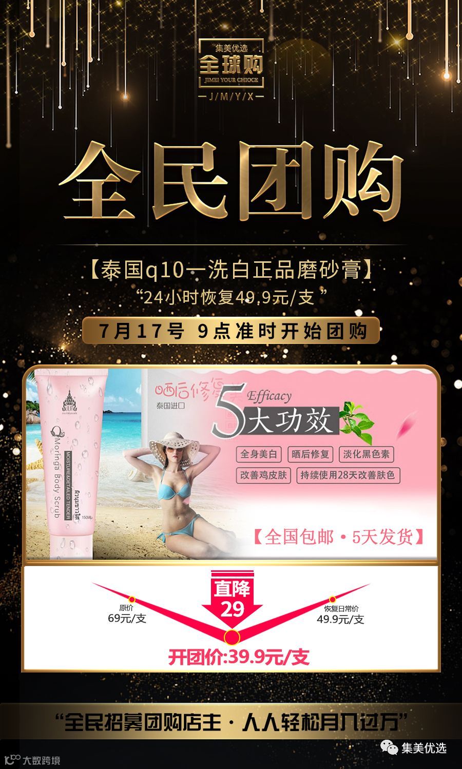 品牌团购 泰国q10一洗白正品磨砂膏全身女保湿嫩白肤脸部身体去角质网红款