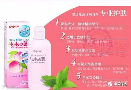 贝亲新推出的桃子叶做的爽身粉,对宝宝热痱,尿布疹,湿疹有快速修复作用。除防痱子以外还可以日晒让皮肤得到镇静的作用,消炎