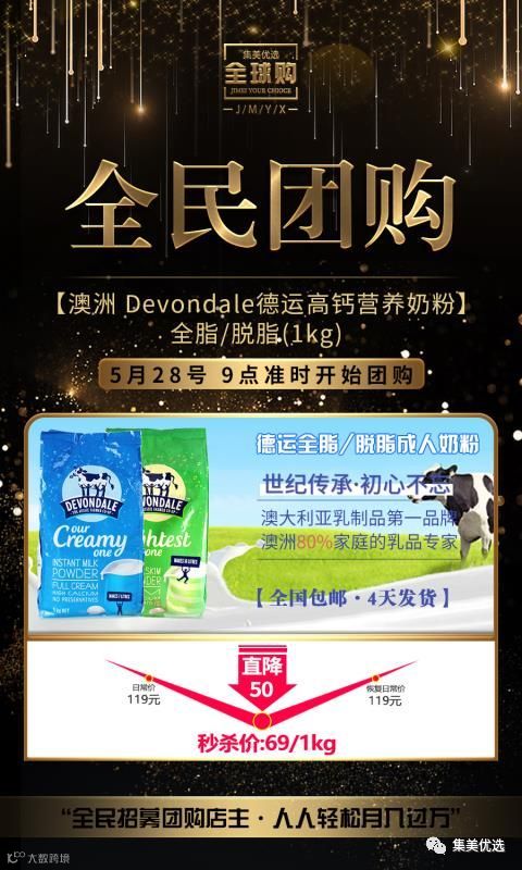 澳洲 Devondale德运 全脂/脱脂高钙营养奶粉 1kg