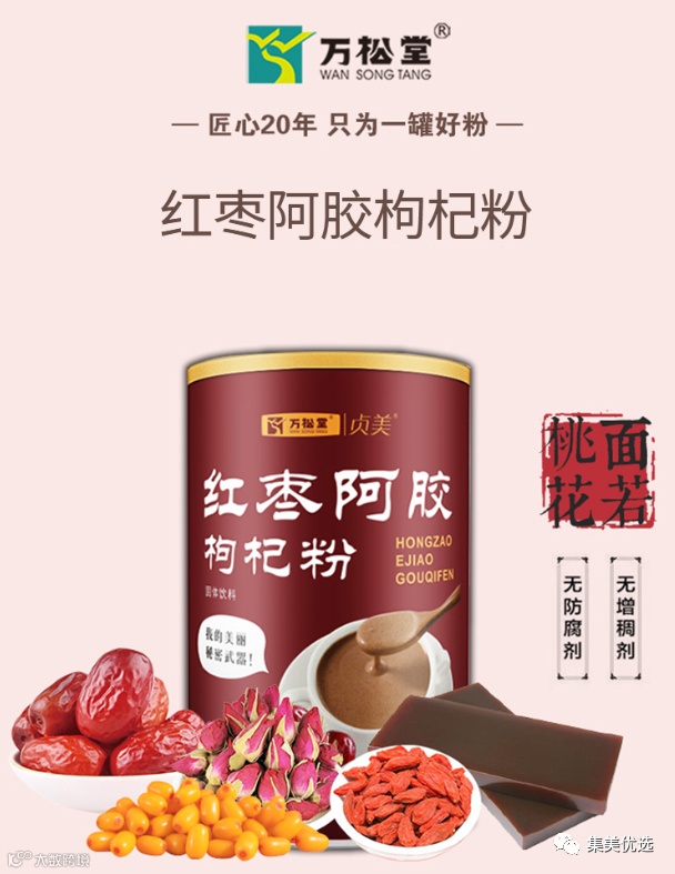 【大牌团购】万松堂 红枣阿胶枸杞粉500克/罐 原价:69元 VIP /黑卡M1会员 福利补贴价:49元 工作、生活压力、体内毒素
