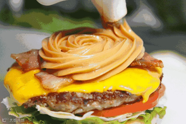 汉堡里面不要只会放沙拉酱啦!换换花生酱试试看。牛肉饼外焦里嫩,pics花生酱味道醇厚,再加一点蔬菜解腻。你一定不会后悔这样的搭配!