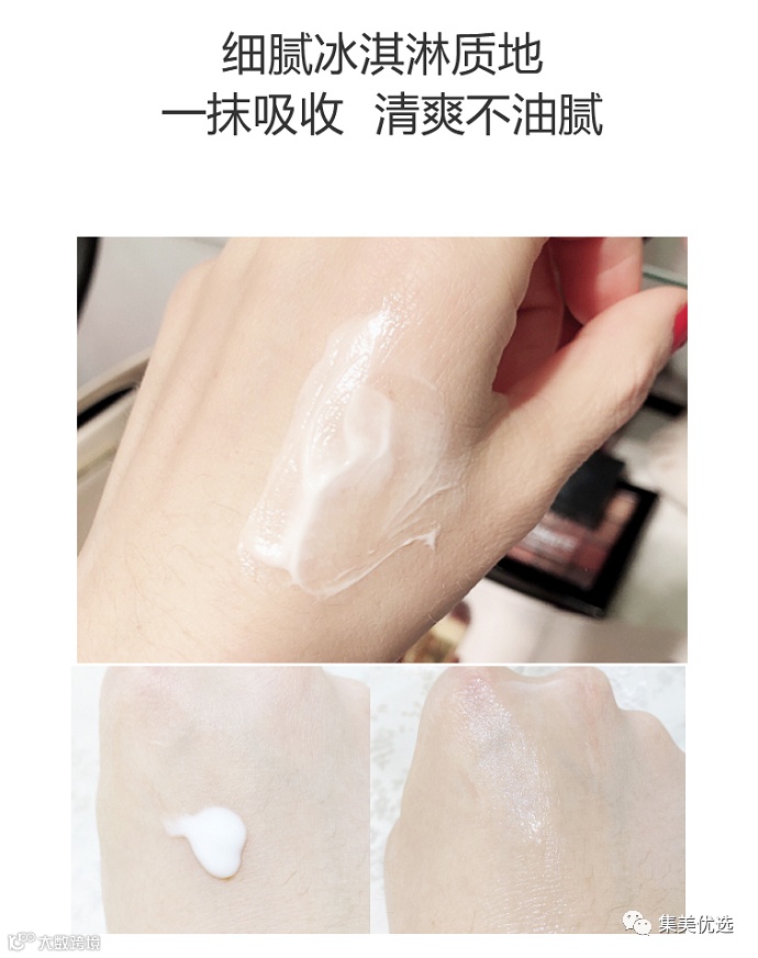 质地用起来细腻清爽,像是冰淇淋一样,完全没有面霜的厚重感,在脸上很好涂开。