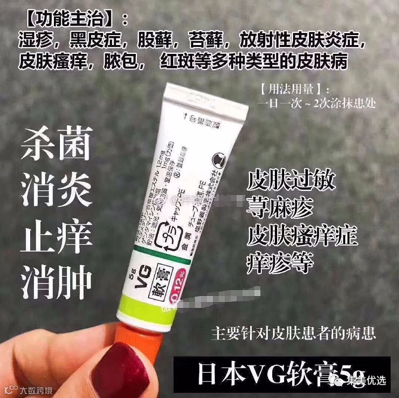 【大牌团购】日本 专用牛皮癣湿疹皮肤膏VG软膏5g/支 原价:79元 VIP /黑卡M1会员 福利补贴价:59元 给大家介绍一款效果很好的日本湿疹软膏