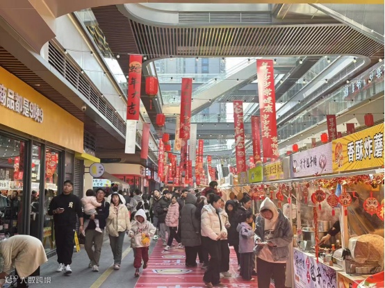 各大消费区人头攒动、热闹非凡,据不完全统计,除夕、初一两天集聚近3万人次客流量。