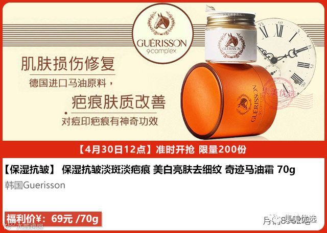 韩国原装进口 Guerisson马油霜奇迹马油膏祛斑疤祛痘印70g/瓶