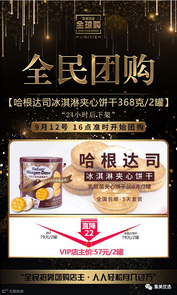 【福利团购】MarLour【哈根达司冰淇淋夹心饼干】368克 乳酸菌夹心饼干 2罐