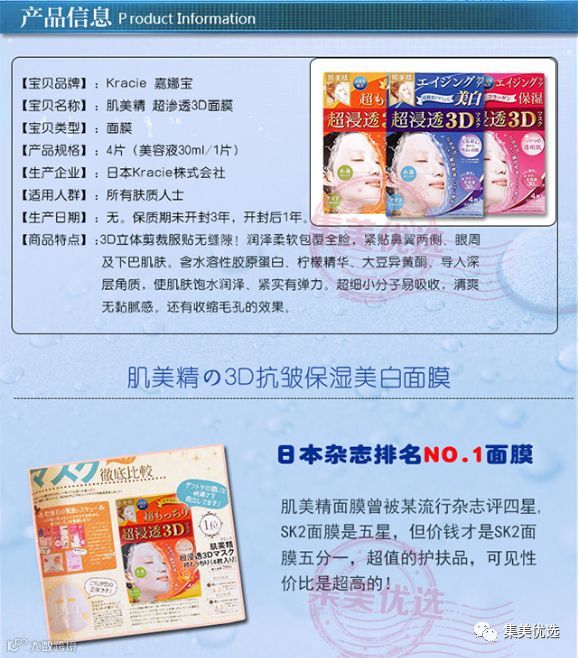 每片含有30ml超高浓度美容液。独特的3D立体剪裁,完全贴合脸型,鼻翼及下巴部位也能完全包裹。