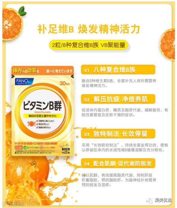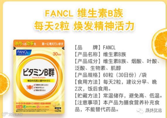 FANCL复合多种维生素B族,能补充您在工作繁重时消耗的营养,帮助食物转化成能量,有利于人体肠胃的健康。有效维持神经系统的正常功能,舒缓压力感,使我们神经体统更健康,是一种高能配方维生素;FANCL复合多种维生素B族是高效能的营养补充剂,其所含的大量B族维生素在代谢过程中起着关键作用。