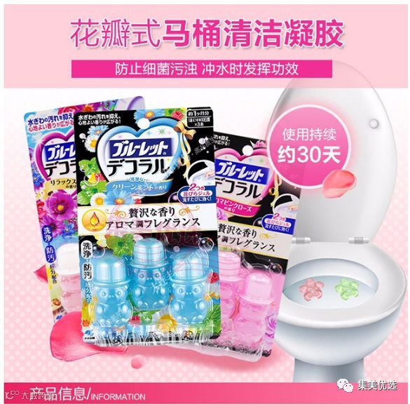 粘在马桶壁上,就会有一股香味,很多香味任选,冲水的时候会自动带下一些清洁剂自动清洁…凝胶能保持一两个星期。刷马桶的时候用剩下的凝胶清洁,马桶就刷得特别干净!