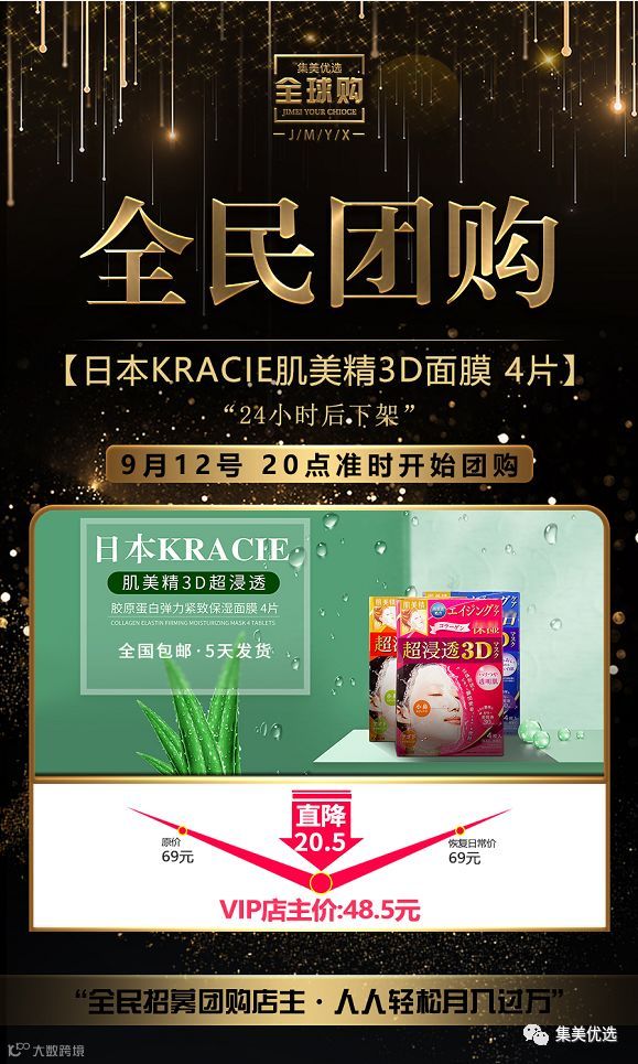 【福利团购】日本本土版Kracie肌美精3D超浸透胶原蛋白弹力紧致保湿面膜 4片
