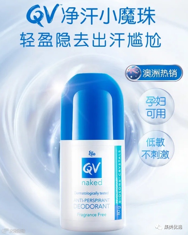 【年中大促】【香港直邮】澳洲QV止汗露 腋下去异味香体走珠 除汗滚珠男女士去狐臭喷雾80g(下单需填写正确的身份证信息) 原价:89元 VIP /黑卡M1会员 福利补贴价:49元(新疆西藏+10元运费)